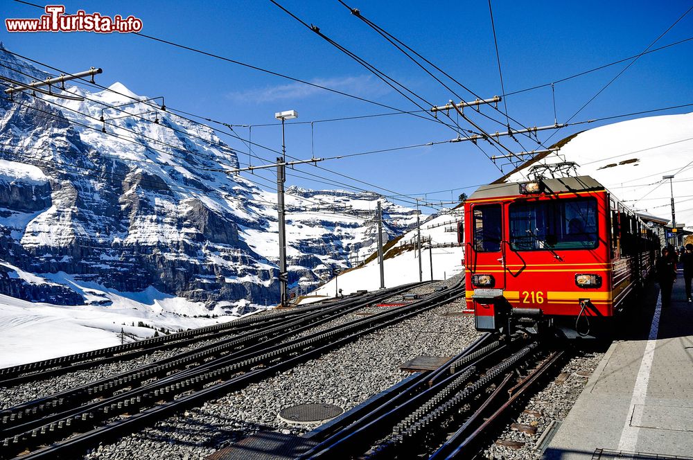 Il capolinea è a Kleine Scheldegg (2061 metri s.l.m.), dove si sale finalmente sulle carrozze dello Jungfrau Bahn, il trenino a cremagliera che comincia la salita vera e propria verso lo Jungfraujoch.