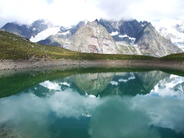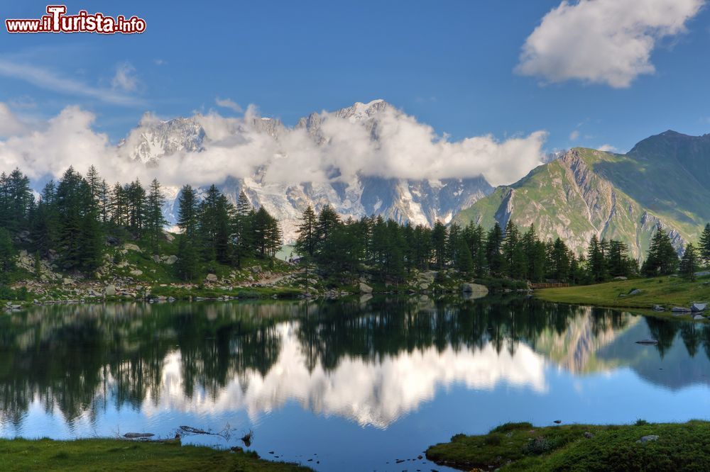 Dal Cervino al Monte Bianco: la vetta più alta d'Europa (4810 metri s.l.m.) si specchia nel Lago Checrouit, piccolo bacino alpino raggiungibile agilmente con gli impianti di risalita dello Checrouit (Courmayeur).