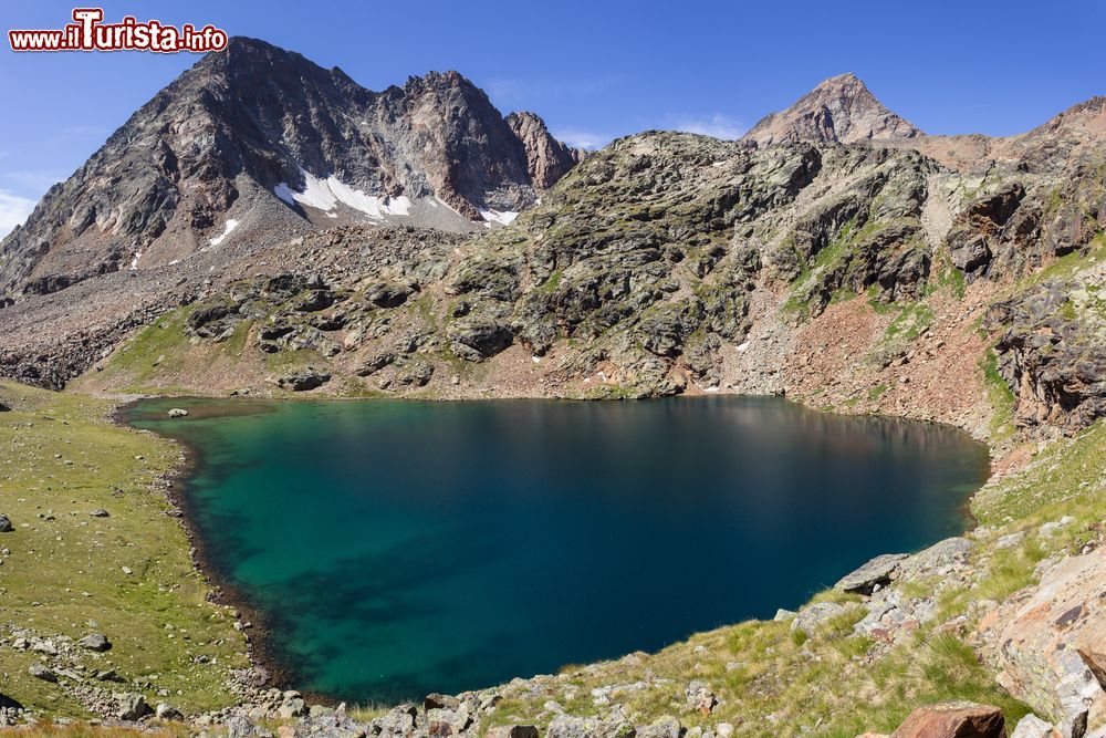 Il lago sorge a quota 2165 metri s.l.m., ma le sue acque freddissime hanno un colore quasi caraibico.