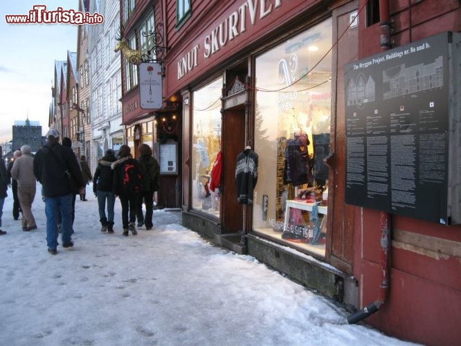 Il Bryggen si veste anche lui per Natale, abbigliando i suoi negozi a festa, con le facciate multicolore delle sue case, dal rosso porpora all'ocra più intenso, che fanno pendant con il bianco della neve che si riversa sulla via. Da piccole finestrelle affacciate sulla strada, puntellinate di rosso verde e bianco, un Babbo Natale in miniatura cavalca fiero la sua slitta carica di doni. All'interno troverete tipici negozietti in legno che si sono riconvertiti al Natale, anche loro catturati da un'atmosfera magica che solo una città del genere può regalare.