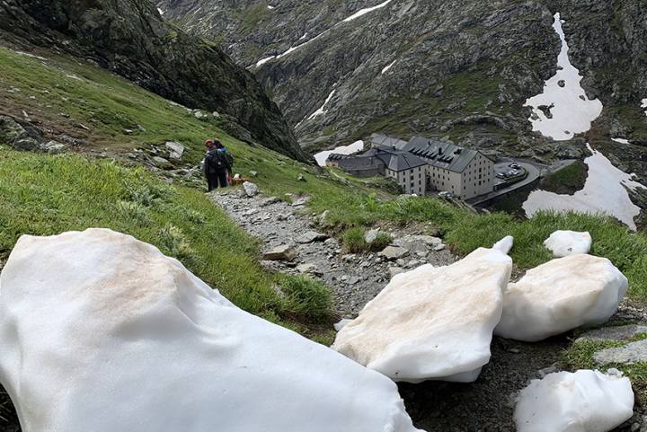 Proprio sul colle al confine fra Svizzera e Italia, a 2473 metri, sorge l’Hospice, un edificio dalle forme semplici e austere, costruito nel Medioevo dai canonici agostiniani, la cui ospitalità, come da tradizione, è leggenderia. In questa casa religiosa destinata ancora oggi ad accogliere i pellegrini, tutto l’anno sono disponibili posti letto in dormitorio (tariffe da 32 a 67 franchi svizzeri), in camera (da 47 a 80 CHF) e pasti “comunitari”, offerta che in estate viene affiancata da quella dell’Auberge de l’Hospice (www.aubergehospice.ch), situato sull’altro lato della strada e comunicante con l’ospizio tramite un camminatoio in muratura e legno.