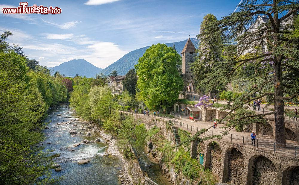 Per scoprire Merano si può iniziare da una passeggiata nel suo cuore più antico, quello adagiato alla sponda destra del torrente; sulla sinistra si affaccia invece il quartiere Maia Alta, Obermais in tedesco, con le sue eleganti dimore signorili. Entrando nel centro da una delle tre porte cittadine (Passiria, Venosta e Bolzano tutt’oggi conservate) si rimane affascinati dalle facciate degli edifici, di epoche differenti, con porte ad arco e splendidi bovindi.