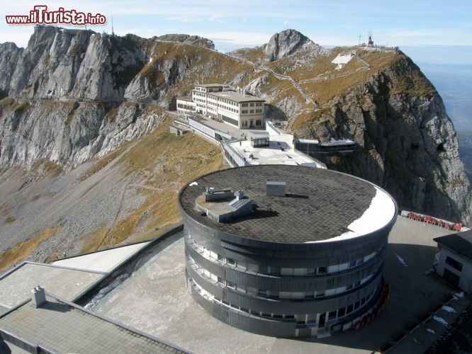 L’arrivo porta al Pilatus Kulm Hotel, annoverato fra gli alberghi sottoposti a tutela più belli della Svizzera e restaurato nel 2010. Qui si aprono tre possibilità: restare sulla terrazza panoramica dell’albergo ad osservare il panorama ed i buffi uccelli neri che offrono simpatiche coreografie affidandosi al vento, oppure percorrere i due sentieri diretti alle vette del Pilatus, il primo più ripido ma breve verso la cima Esel, l’altro più articolato e lungo verso la cima Oberhaupt. Scegliendo il secondo ci si impatta con il passato leggendario del Pilatus. Il primo tratto del cammino lo si fa attraverso le caverne attribuite ai draghi antichi abitanti dei suoi anfratti.