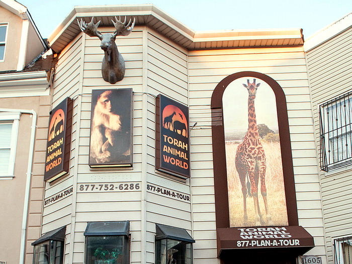 Un museo che si basa sulla tassidermia, cioè su animali imbalsamati in pose più o meno realistiche, è qualcosa di superato, in un epoca in cui il rispetto per gli animali è sempre più tenuto in considerazione. Non la pensa così il fondatore di questo museo, il rabbino Shaul Simon Deutsch che conduce personalmete le visite guidate al museo, il quale ha ben pensato, in parole povere, di costruire una sua personale Arca di Noè, costituita da circa 350 animali impagliati tra mammiferi, uccelli, pesci e rettili. Il museo, che si rivolge alla numerosa comunità chassidica ebraica che a New York conta numerosi seguaci, dovrebbe raffigurare solo gli animali menzionati nella Torah e gli altri antichi testi sacri su cui si fonda la religione ebraica, anche se fra questi spunta, abbastanza inspiegabilmente, una mamma canguro con tanto di cucciolo nel marsupio, un animale che divenne conosciuto al mondo occidentale solo dopo i viaggi del capitano James Cook che ne descrisse il primo nel 1770. Anche le ambientazioni si prestano a qualche dubbio, come quella in cui giraffe e lontre sono improbabilmente assieme. La maggior parte degli animali imbalsamati provengono da donazioni o vengono reperiti nei mercati antiquariali o di vicinato, dove inevitabilmente finiscono questi oggetti che trovano sempre meno accoglienza nelle case moderne, non solo per motivi di look. Il pezzo più pregiato è una gigantesca testa di elefante, del valore di circa 40.000 $. Diversamente dalla maggior parte dei musei, qui tutto si può toccare, dagli animali alle uova perché, come dice il rabbino: ”Se tocchi la Storia, la Storia tocca te”. Nonostante l’insospettabile flusso di visitatori, circa 35.000 visitatori all’anno, cioè più di un centinaio al giorno, il museo rischia di essere CHIUSO, o dislocato altrove, se non raccoglierà i fondi necessari per rimanere aperto. Il museo si trova nel quartiere Ebreo Ortodosso di Borough Park, a Brooklyn e il poco esplicativo sito è www.torahanimalworld.com.