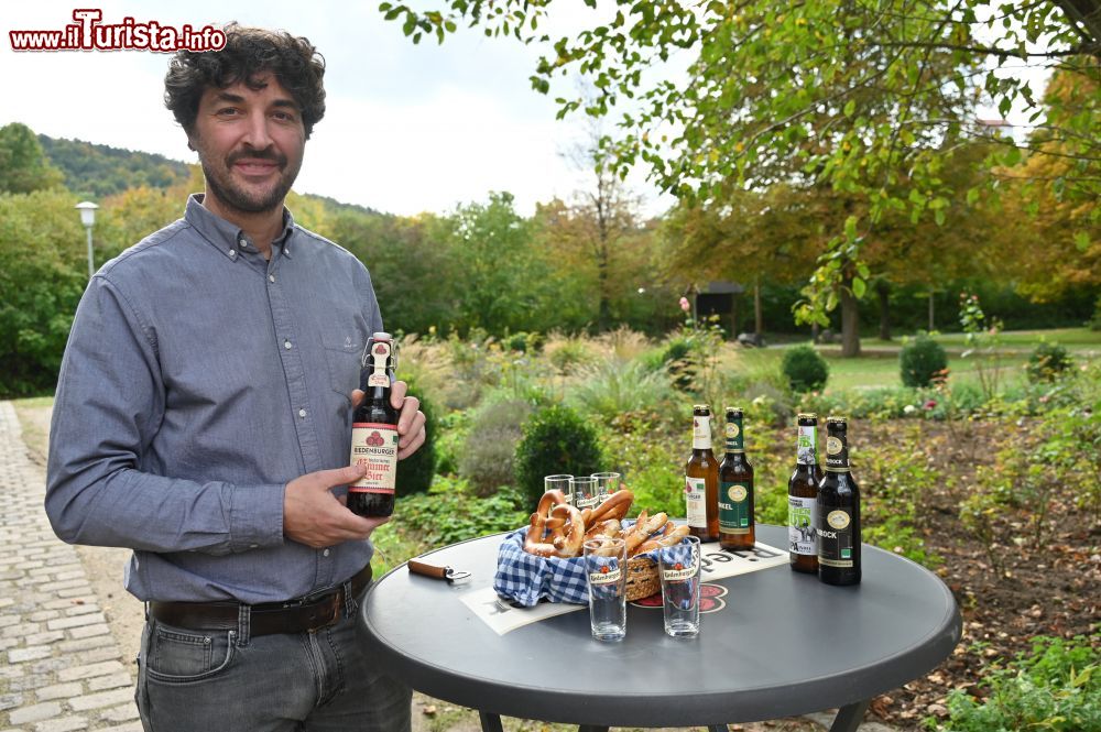 In Germania la birra può contenere solo luppolo, malto, lievito e acqua: in questi pochi ingredienti si cela una molteplicità di gusti insospettabile, svelati dai birrai della regione, ognuno dei quali ha ricette e segreti. A Riedenburg, incorniciata da pittoresche rocce giurassiche e ampie brughiere di ginepro, c’è il birrificio biologico Riedenburger, fondato nel 1756 da Michael Krieger che acquistò la “brauhaus” dalla famiglia Schattenhofer. Dal 1994 l’azienda è diventata eco-sostenibile come spiega Maximilian Krieger (foto) che per tre anni ha lavorato in un birrificio nelle Marche: “Per le nostre birre usiamo il farro puro, quello di varietà più antica che ha meno resa in agricoltura ma è di maggior qualità. Produciamo circa 30 tipi diversi di birre di cui 6 analcoliche: ogni giorno dall’azienda escono 40-50 mila bottiglie da 33 cl e mezzo litro. Sono tutte certificate Bioland grazie all’uso di ingredienti unici. E dal 1997 produciamo in collaborazione con l’abbazia di Plankstetten la loro linea di birre utilizzando i loro prodotti, naturalmente da agricoltura biologica”.