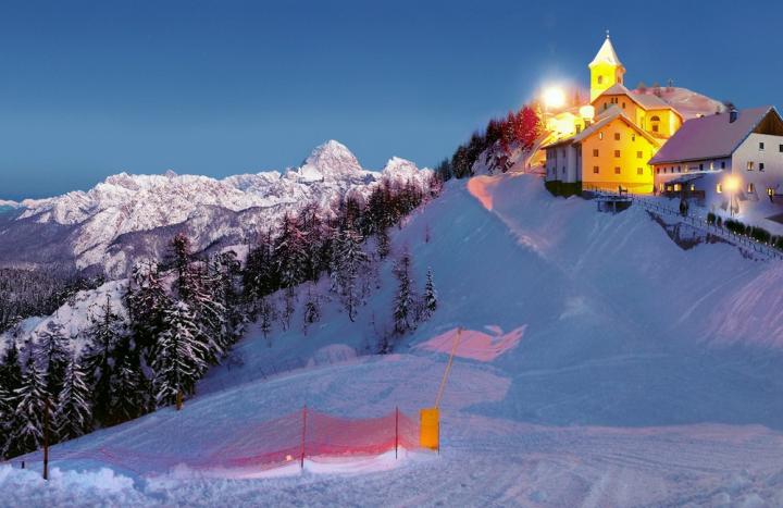 Sciare di notte? Potrebbe valer bene una messa, o almeno un ringraziamento per propiziarsi le brume della sera. Se la pensate così è il santuario dei Monti Lussari che fa per voi. Qui, nel comprensorio sciistico di Tarvisio, la notte non è “piccola”, ma è targata “Di Prampero”, la mitica rossa dove, fino a metà marzo, si può sciare il martedì e il venerdì, dalle 19 alle 23. Il tracciato in notturna parte dalla stazione intermedia della telecabina, con la vista del santuario sopra le vostre teste. Qui si può arrivare anche senza sci per una passeggiata e una cena nel borgo incantato dei Lussari. La risalita per i pedoni costa 14 euro, 20 per gli sciatori. www.promotur.org.