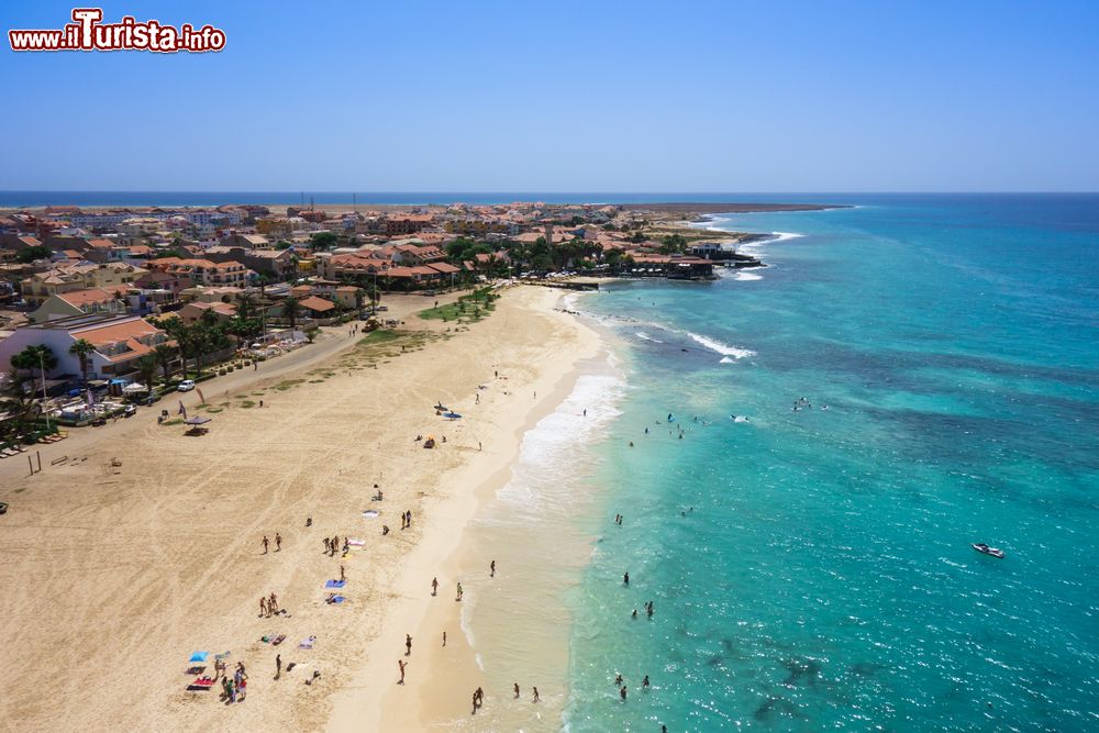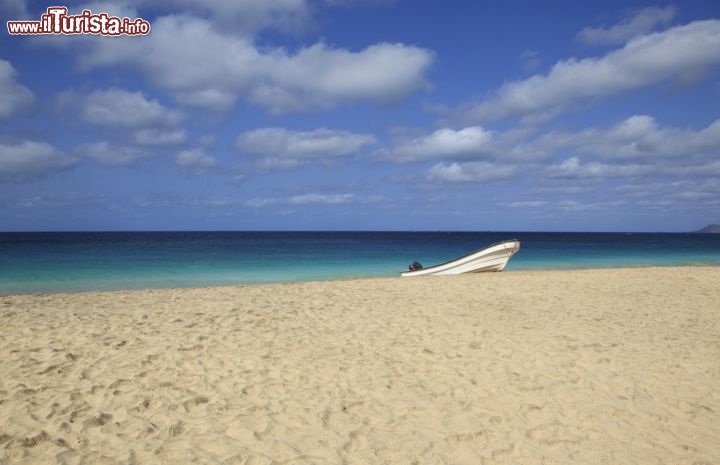 L'Isola di Sal (Ilha do Sal) é la più orientale delle cosiddette Ilhas do Barlavento, e racchiude alcune magnifiche spiagge. Per trovarle bisogna recarsi nella parte sud dell'isola: a dispetto del nome originario, Ilha Plana, dovuto alle sue basse morfologie, l'isola è caratterizzata in massima parte da rocce e scogli. Presso l'abitato di Santa Maria troviamo invece delle magnifiche spiagge: ad est, oltre le saline, si apre la grande Shark Bay, più esposta agli alisei e quindi preferita dagli amanti di kitesurf e windsurf. Si estende per una lunghezza di circa 4 km. A sud-ovest di Santa Maria si apre la spiaggia principale, Praia Santa Maria (qui foto) che in pratica senza soluzione di continuità, se si eccettua il Molo di Santa Maria, si estende dal borgo cittadino fino alle rocce di Praia Ponta Petra. In totale sono circa 5 km di spiagge dorate, bordate da acque turchesi. Ci sono stabilimenti balneari, ma soprattutto lunghi tratti selvaggi fiancheggiati da dune, e nonostante l'elevato numero di turisti, ognuno riesce a trovare il proprio angolo di solitudine, se lo desidera.