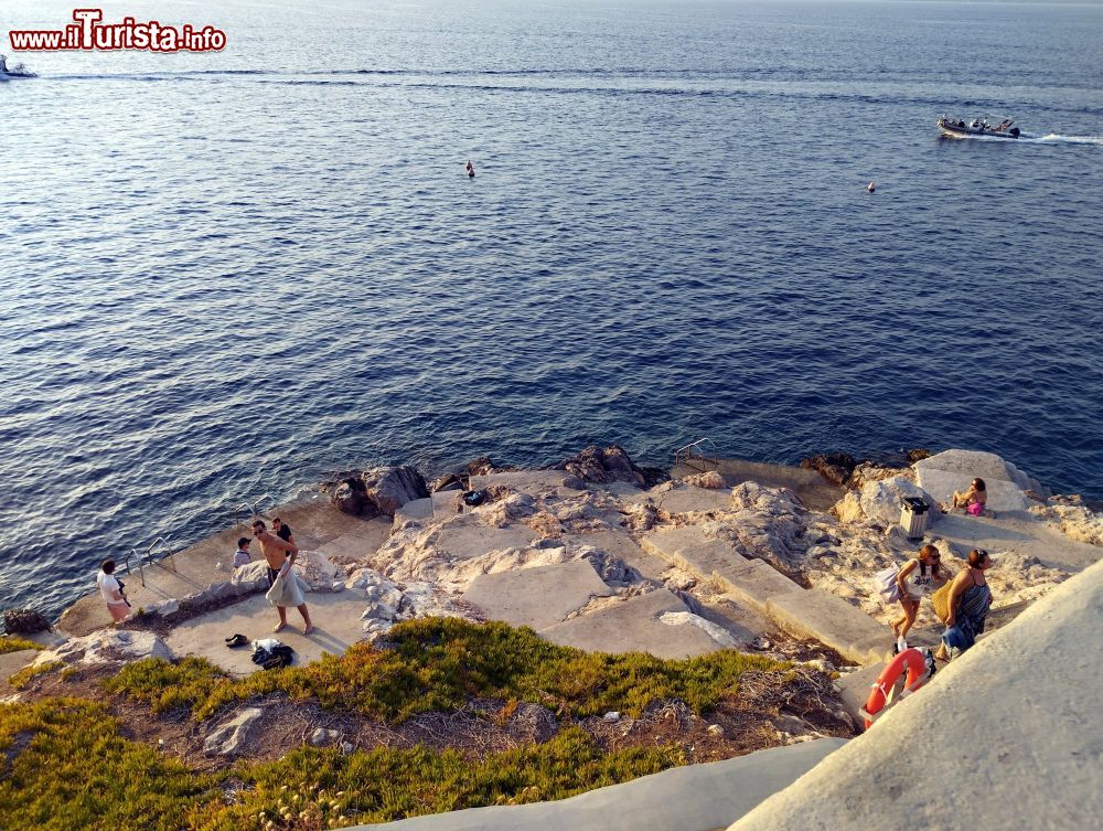 È fatta di ciottoli levigati, attrezzata con bar, ombrelloni e lettini. Se prendete la prima barca del mattino o l’ultima che rientra alla sera (ore 18:30 in estate), sarete probabilmente a bordo anche con i gestori della spiaggia.