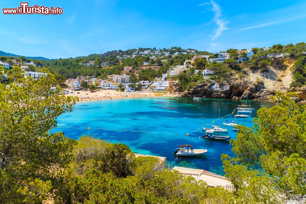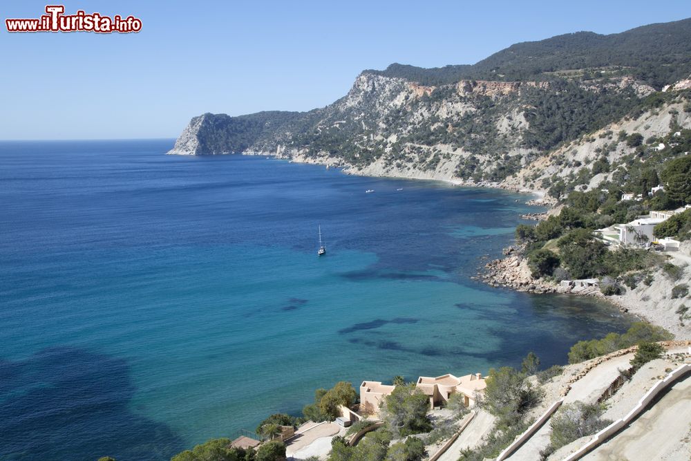 Subito vicina a Cala d’Hort, Cala Vadella è un’altra insenatura tranquilla e riparata, circondata da colline e lambita da acque turchesi.