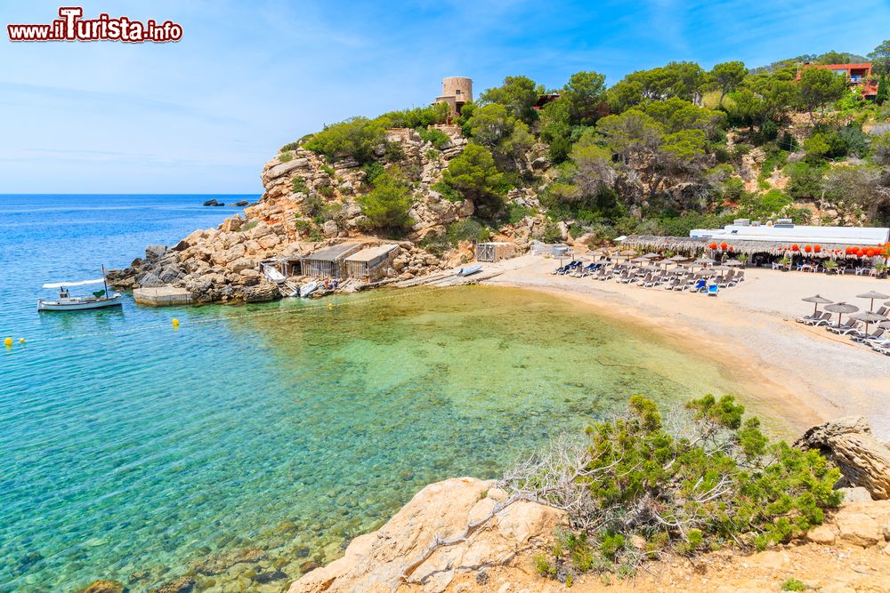 Molto tranquilla, ideale per giornate di relax a pelo d’acqua, la spiaggia non è molto grande, ma ha tutto quello che serve: due ristoranti, uno dei quali direttamente sulla sabbia, e possibilità di affittare lettini e ombrelloni. I suoi fondali, poi, ricchi di vita, vanno esplorati con maschera, pinne e boccaglio. Nei suoi pressi, infine, si trova un ampio parcheggio gratuito. Chi preferisce muoversi con i mezzi pubblici lo può fare, prendendo il bus Linea 1 che parte da Sant Antoni – Stella Maris.