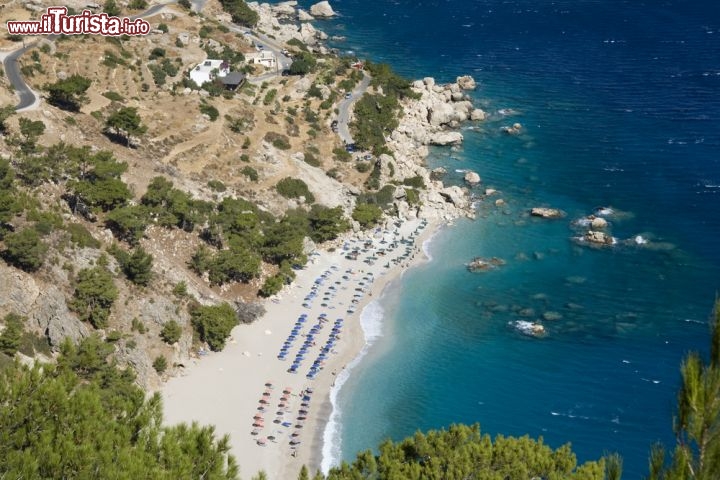 È la terza spiaggia di questa costa. Un poco più lontana e a nord di Pigadia, permette di scoprire uno dei tratti più sinuosi e selvaggi di Karpathos, fra boschi di pino e rocce strapiombanti. Poco prima del parcheggio c’è anche la piccola chiesa di San Luca con affreschi bizantini per un “dopo spiaggia” diverso e culturale.