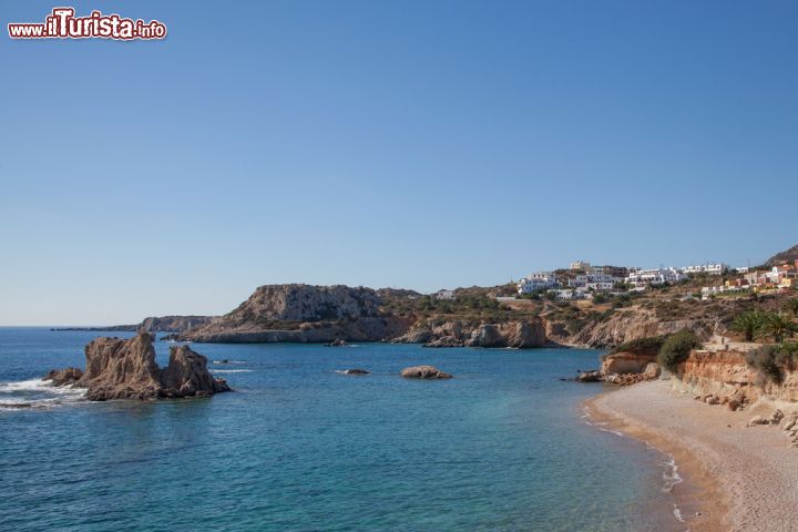 Poco oltre, la strada si fa sterrata, pur restando agevole, e permette di raggiungere alcune baie dove il vento si placa di fronte alle scogliere dell’isola di Kasos, l’isola vicina di casa di Karpathos.