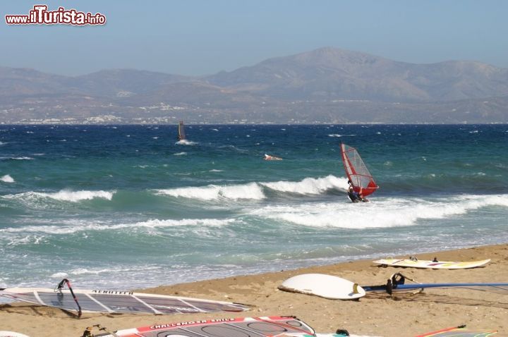 Per chi invece proprio non possa stare fermo, la scelta cadrà su Toukalia, una lunga spiaggia poco attrezzata che ha il suo punto di forza nell’essere esposta al meltemi, il vento che sempre soffia sulle isole. Il risultato? Mare spesso agitato e un luogo ideale per il windsurf e il kite. Quando le raffiche fischiano forte il mare si riempie di vele colorate che corrono sulla tavola blu. Come sempre c'è anche una taverna per le merende e qualche stanza in affitto a poca distanza.