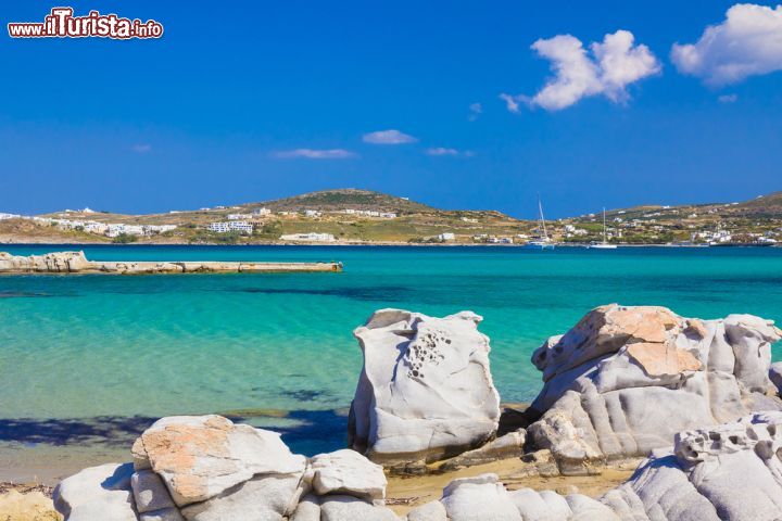 Avete mai fatto il bagno insieme a Titani pietrificati? A Paros si può. Per la precisione nella spiaggia di Kolimbithres, una delle più famose spiagge dell’isola, a 5 km dalla cittadina nella baia di Naoussa. La spiaggia è circondata da enormi blocchi di granito incisi nei secoli dal vento e dal mare e il mito vuole appunto che siano i Titani colpiti da Zeus e pietrificati. Voi ammirateli con emozione e ricordate che non vi faranno mai del male mentre scavalcherete da una spiaggetta all’altra: la baia infatti è formata da diverse anse coperte di sabbia fine. Il risultato sono una serie di piscine naturali dove l’acqua è assolutamente trasparente e quasi sempre immobile: il sogno per ogni amante del mare.