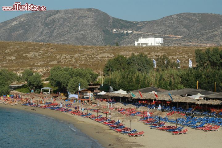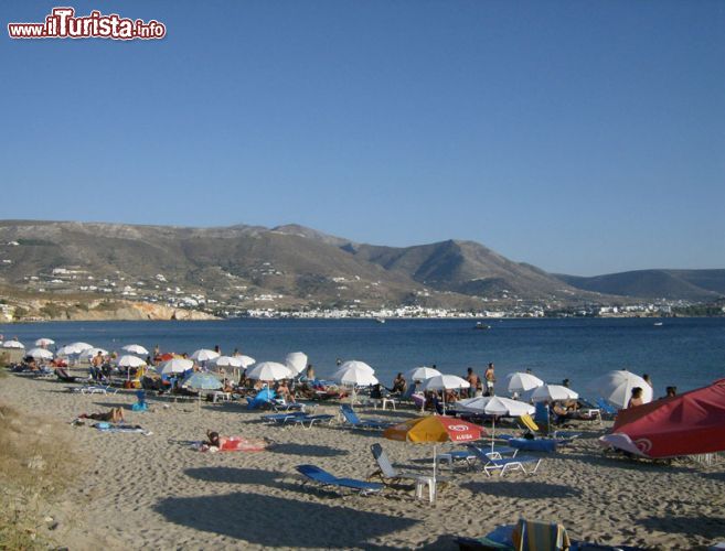 Ma sia chiaro, siamo in Grecia e a Paros: quindi c’è anche il mare e la sabbia, tra l’altro entrambi belli. Quindi al mattino quando la musica tace, o in bassa stagione, anche questa è una zona che merita una sosta dove spendere qualche ora godendosi il sole. E magari un po’ di sottofondo sonoro. In alternativa, a circa 3 km, c’è la località di Logaras che offre un ambiente più tranquillo con una spiaggia gradevole e meno mondana, ma pur sempre attrezzata e affollata di turisti stesi al sole.