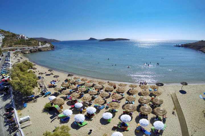 Sabbia, acqua blu e sole. Se ci aggiungi alberi di tamerici ottieni il ritratto di Poseidonia, un’altra delle spiagge più apprezzate dell’isola. Si trova a sud di Syros, è ben collegata con il capoluogo e ha una ampia serie di strutture con stanze in affitto, taverne e bar. Un dettaglio da ricordare è che Poseidonia ha anche una splendida vista su alcune isolette poco al largo e un piccolo porto che attira per la notte alcuni dei fortunati che girano tra le isole a vela e a motore. La spiaggia è di sabbia e ciottoli e l’acqua trasparente ed è perfetta per un bagno rilassante. Un tuffo nel blu dell’Egeo è assicurato.