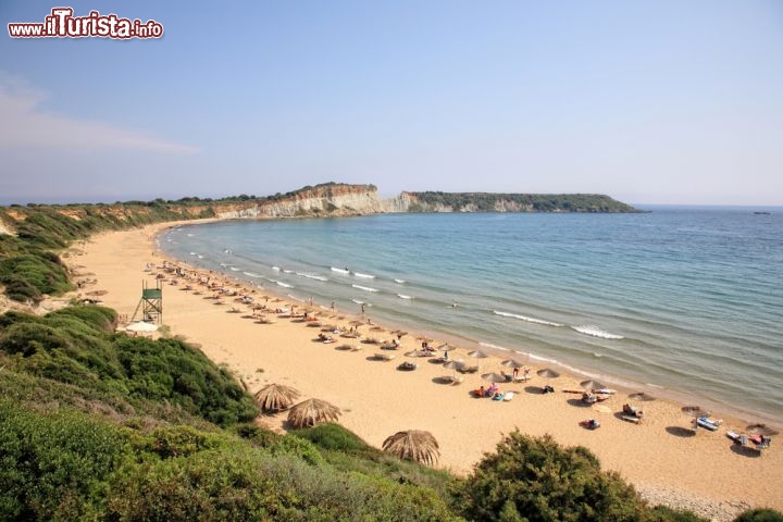 Le tartarughe hanno buon gusto: e infatti la spiaggia di Gerakas, una di quelle dove vengono a deporre le uova sulla costa est, è anche una delle più belle di Zante. Si trova 18 km a sud del capoluogo ed è una splendida spiaggia sabbiosa all'interno di una grande baia con acque cristalline e sabbia dorata. Il promontorio su cui sorge è formato da un particolare argilla con cui, si dice, si possano anche fare salutari fanghi. Può darsi, ma con un mare tanto bello non è proprio la prima idea che viene in mente. Qui vengono a deporre le uova le tartarughe e per questo la zona rientra nel parco marino. L'accesso alla spiaggia è proibito da mezz’ora prima del tramonto fino a mezz’ora dopo l’alba per permettere alle piccole tartarughe di raggiungere l'acqua senza essere infastidite.