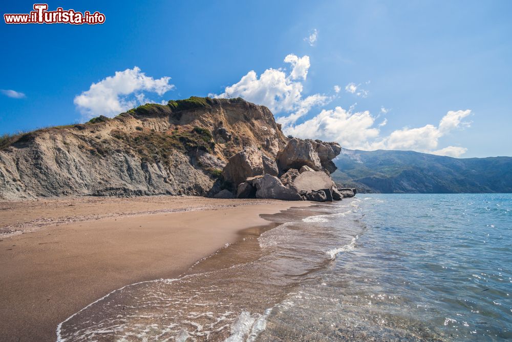 Infine eccoci a Makris Gialos, un'altra spiaggia modello cartolina, una tappa da non perdere nel tour delle spiagge di Zante. Già arrivare è un piacere: la strada che segue il bordo della costa vi spingerà a emozionanti soste per godervi il panorama e scattare le immancabili foto da pubblicare sui social. All'arrivo troverete davanti un mare dai colori caraibici con sabbia, ciottoli chiari e le macchie di rocce sul fondo. Guardate bene: ogni tanto qui sembra che le rocce si muovano. Non credeteci: sono pesci. In questo tratto, infatti, lo snorkeling può regalare belle sorprese. Per i più esperti ci sono anche le grotte che si spalancano nelle falesie e potrete andare a esplorarle (ovviamente questo vale per chi abbia esperienza di mare). Alla spalle della spiaggia, dopo il bagno, non mancano sistemazioni per dormire e taverne per una merenda golosa.