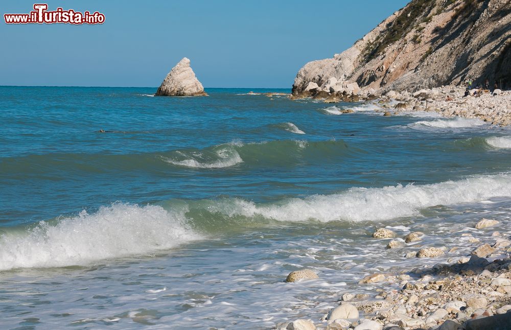 Nel Comune di Sirolo, la spiaggia prende il nome dai due faraglioni che spuntano dal mare. Non esistono sentieri facilmente percorribili che conducano qui: si può raggiungere solo via mare, eppure non c'è turista che non si conceda una giornata in questa spettacolare spiaggia di sassolini bianchi. Il mare cristallino, la falesia a strapiombo sul mare e un ambiente incontaminato – non esistono stabilimenti né servizi – le valgono anche un posto nella lista delle spiagge più belle d'Italia. Particolarmente adatta per le coppie, è invece sconsigliata per i bambini molto piccoli data l'assenza di ombra e di servizi.