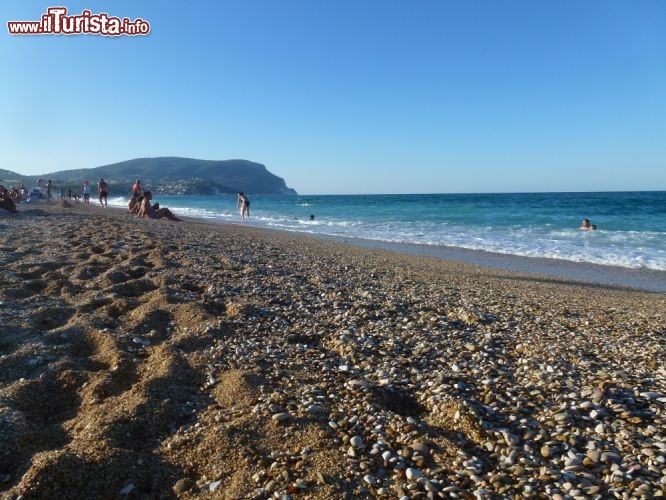 È una spiaggia di sassolini dorati, lambita da un mare calmo e azzurro, mentre alle spalle il lungomare è sempre molto frequentato da chi ama passeggiare.