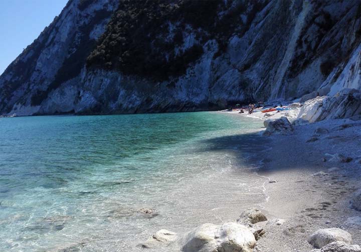 Un'altra spiaggia completamente selvaggia e spettacolare ai piedi della parete rocciosa del Monte Conero. Sassolini e ciottoli accolgono i pochi visitatori che raggiungono questa caletta.