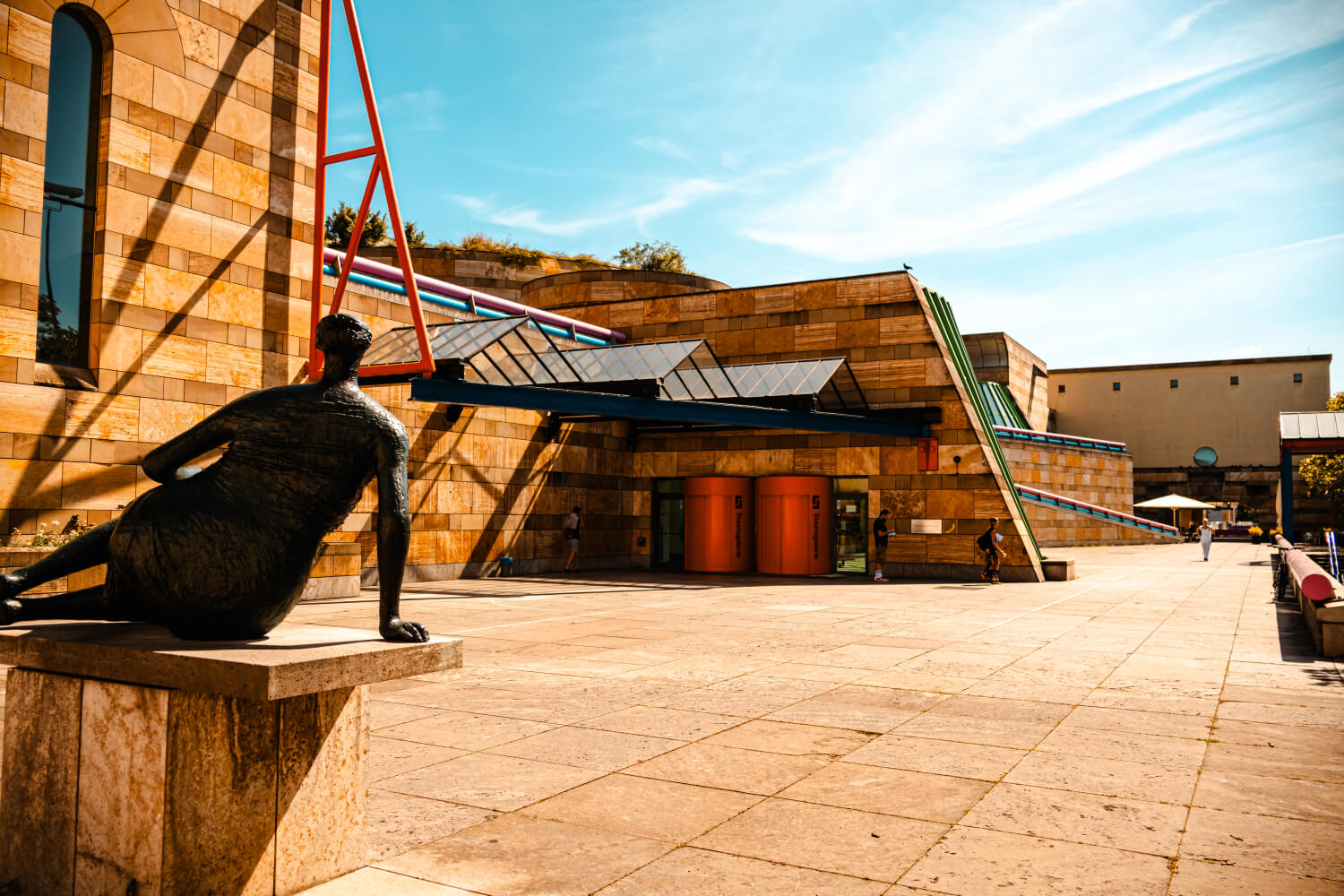 Alle spalle di Schlossplatz si allunga Konrad-Adenauer-Strasse, un asse urbano che concentra istituzioni culturali e teatrali notevoli. La Staatsgalerie Stuttgart è uno dei musei più importanti della Germania; aperto nel 1843, ricostruito nel 1958 è stato oggetto di un’estensione firmata dall’architetto James Stirling (1984) che ne ha reso il profilo inconfondibile: l’Alte Staatsgalerie con le sue linee rette e la sua geometria rigorosa e la Neue Staatsgalerie con una facciata curva in acciaio e vetro, dai colori vivaci. Ospita un percorso cronologico dal XIV secolo fino ai nostri giorni su12.000 metri quadrati.