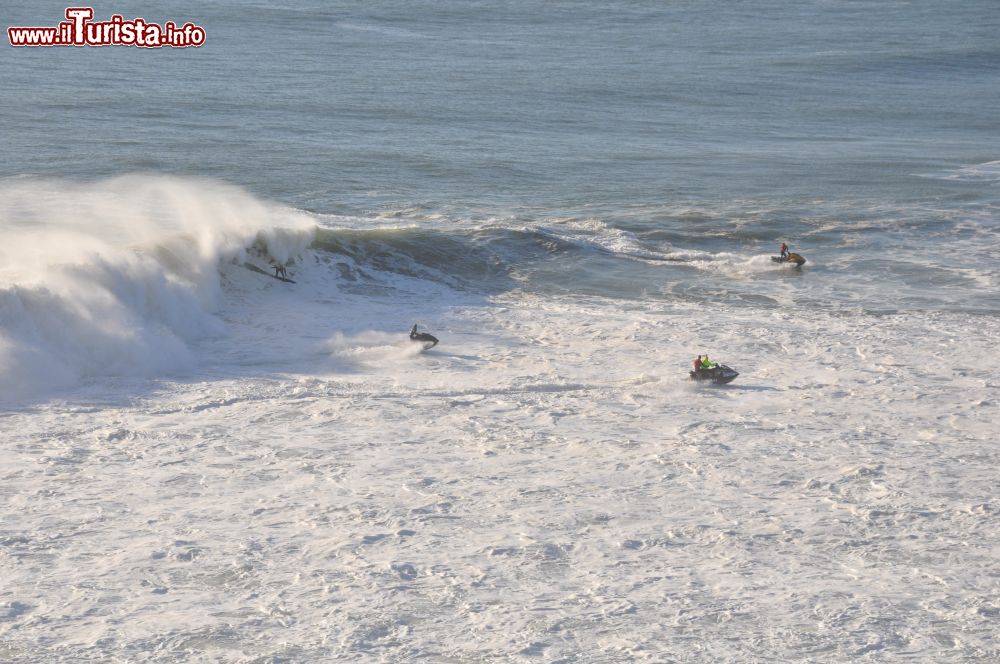 La spiaggia di Praia do Norte a Nazaré da il meglio di sé in inverno, da novembre a marzo, quando l'Anticiclone delle Azzore si ritira e lascia spazio alle correnti occidentali atlantiche che spirano intese alzando le celebri onde che possono raggiungere le altezze da record in occasione delle perturbazioni più intense