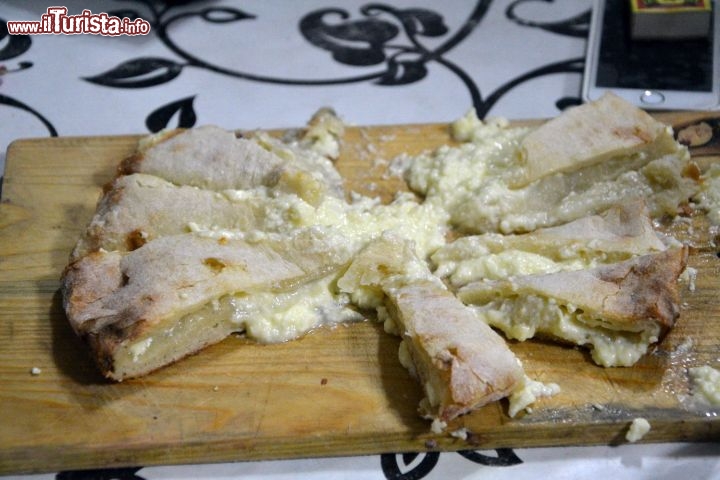 L'incontro con gli svani, che vivono ancora nelle loro case di pietra, con le stesse essenziali modalità da secoli, sopravvivendo in un ambiente ostile, è sicuramente uno dei momenti topici di un viaggio nello Svaneti. Abbiamo avuto la possibilità di incontrare alcune famiglie, di gustare il loro piatto più tipico, la focaccia al formaggio di montagna chiamata Khachapuri (foto sotto), di osservare lo sguardo fiero, segnato dal tempo, di un popolo abituato a lavorare duro, perchè da queste parti l'inverno non perdona. Complice l'umidità che risale dal Mar Nero, queste sono tra le zone più nevose del Caucaso, e spesso i villaggi di montagna risultano isolati per settimane, con i sentieri e le mulattiere di sovente investite da tormente e valanghe. Le comunità allora si stringono intorno ai propri focolari, ed ogni villaggio è diventato come una unica famiglia, unita dalla solidarietà di una vita difficile, ma resa sublime dalla sua semplicità.