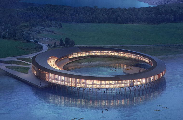 La struttura ricettiva è stata concepita e sarà messa a punto in un'ottica di turismo sostenibile, e avrà la capacità di produrre un quantitativo di energia più elevato rispetto a quello che consumerà. Le sue sembianze saranno quelle di una navicella spaziale, ma gli oggetti volanti non identificati non c'entrano: è tutto vero, e la concretezza è dimostrata dal fatto che l'hotel è stato ispirato dai fiskehjell, vale a dire le costruzioni tradizionali in legno che i pescatori della Norvegia adoperano per essiccare i pesci.