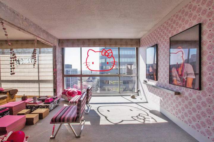Abbiamo dei parchi a tema Hello Kitty, sia in Giappone che in Cina. A Tokyo, per esempio, il Keio Plaza Hotel mette a disposizione della propria clientela addirittura una Hello Kitty Room: proprio così, una stanza interamente ispirata a Hello Kitty, in cui a dominare sono i colori del bianco e del rosa, perfetta per offrire un'esperienza di soggiorno diversa dal solito. Anche in America tempo fa un Hotel aveva allestito delle stanze a tema Hello Kitty!