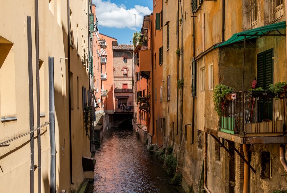 Siamo nel Medioevo, precisamente nel XII secolo: la città, priva di un fiume naturale, decide di deviare il corso del Reno e del Savena che scorrono al di fuori delle mura e ricavare artificialmente alcuni canali, allo scopo di portare acqua ai mulini del grano e della seta nonché di agevolare la navigazione verso il Po. La lavorazione della seta, in particolare, si era diffusa in città alla fine del Duecento ed era ben presto divenuta il fiore all’occhiello della produzione manifatturiera cittadina, trasformando Bologna nella capitale italiana del settore tessile, assieme a Milano. I lavori di deviazione arrivano al completamento nel XVI secolo con la creazione di 5 canali (Navile, Reno, Savena, Cavaticcio e delle Moline), tutt’oggi esistenti, coperti progressivamente dagli anni ‘50 del Novecento nell’ambito di un grande progetto di riassetto urbanistico. Nonostante ciò, il legame della città con le acque riemerge dal passato attraverso alcuni tratti ancora visibili nel centro storico e nelle prime periferie urbane, che vi mostreremo nel corso di questo tour dei canali bolognesi in 5 tappe.
