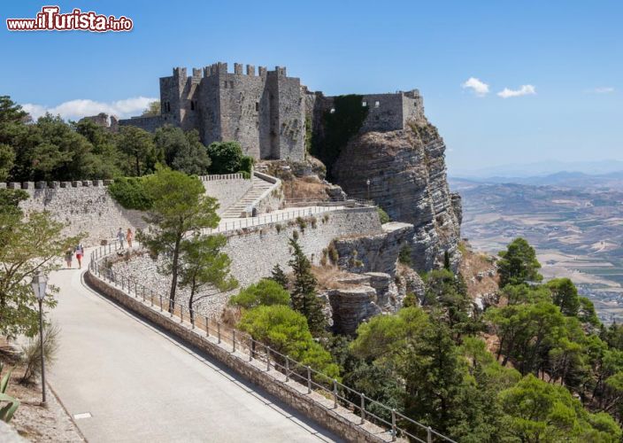 La vista dal Castello di Venere spazia dal Monte Cofano alle Egadi, un panorama che lascia senza fiato e che accarezza tutta la caratteristica mezzaluna trapanese, un antiteatro naturale generato – se si ascolta la leggenda – dalla falce persa da Demetra alla ricerca della figlia rapita da Ade, re degli inferi.