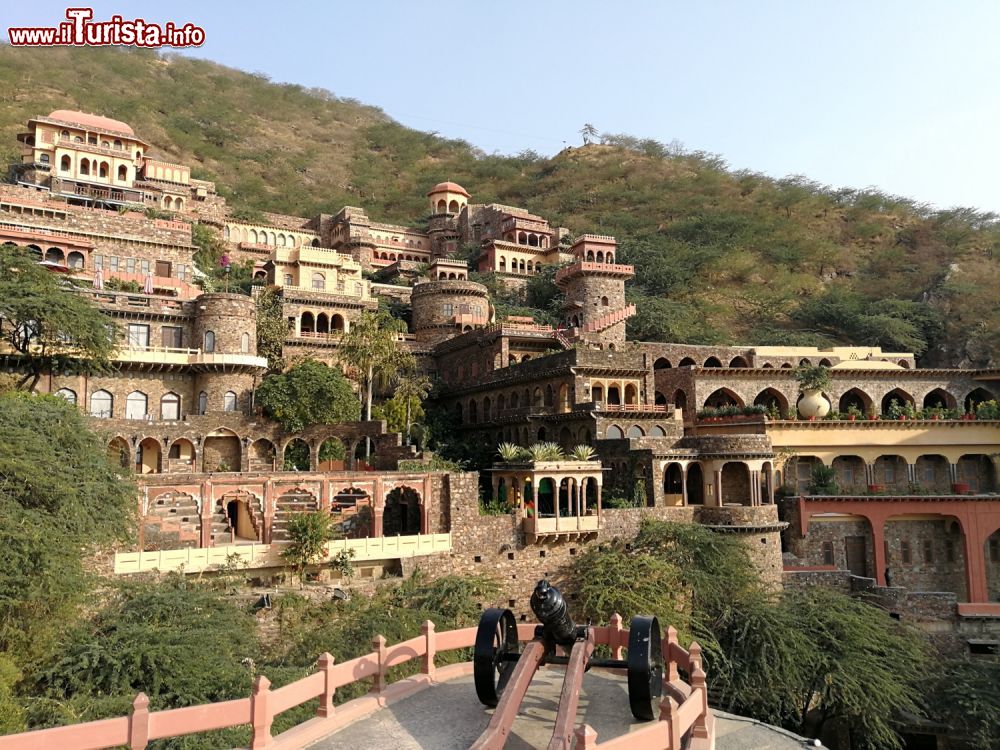 Lungo l’autostrada che collega Jaipur a Delhi, arroccata su un costone, si scorge infine il Forte di Naamrana, hotel di lusso, ex residenza storica fuori dal tempo, costruita nel 1464.