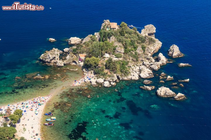 Isola Bella è così vicina alla costa che spesso, con la bassa marea, diventa una penisola raggiungibile a piedi dalla spiaggia di Taormina.