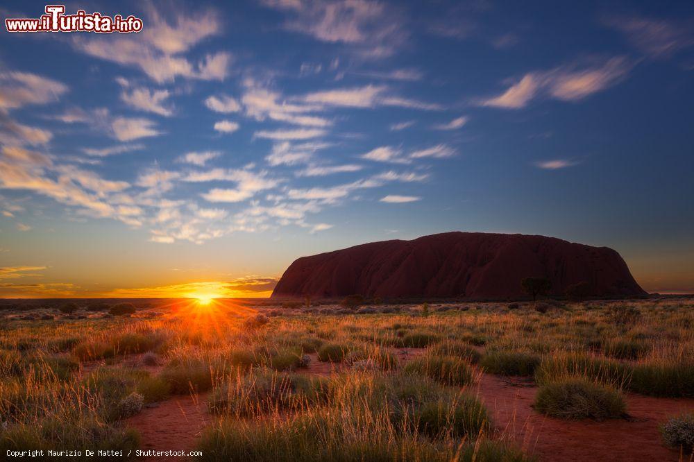 Uluru, la Montagna Sacra degli Aborigeni australiani, Patrimonio Mondiale UNESCO si alza, in completa solitudine. per quasi 350 metri. Imponente, magica e misteriosa. Spicca, immobile e fiera, nel mezzo del niente e può essere avvistata anche da molto lontano.