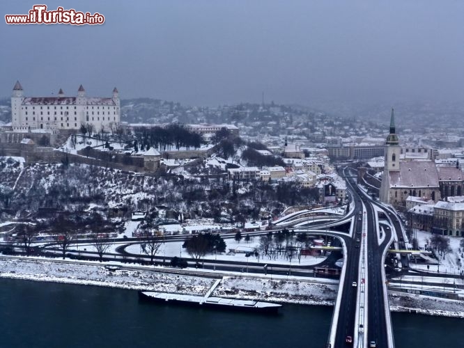 Come le altre nazioni dell'Est Europa la Slovacchia, e con essa Bratislava, ha conosciuto gli sconvolgimenti dettati dal socialismo, che qui si è abbattuto cercando di sradicare il passato di una terra già profondamente provata. I segni del regime sono oggi ancora grandi e pesanti, come se il socialismo avesse voluto imprimere qui un segno indelebile che rimanesse anche dopo la sua caduta. Ce lo dimostra l'imponenza della torre Ufo sul Ponte Nuovo (Novy Most), dal quale si gode di una vista mozzafiato, ma per la cui costruzione è stata distrutta la parte della città che corrispondeva all'antico quartiere ebraico, sulla via Zidovska, e di cui oggi rimangono solo moderni fregi commemorativi.